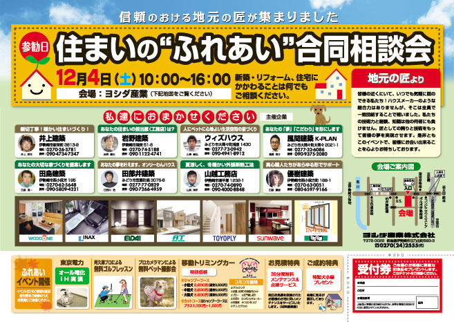 ヨシダ産業のお取引先様でもある「地元の匠」が一堂に会し、住宅相談会を開催します。