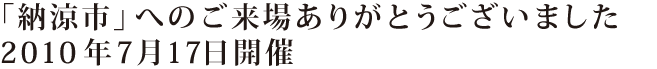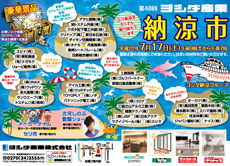 今回の納涼市は「ヨシダ産業クルーズ」と銘打ち、各出展企業様の“島”を巡っていただく趣向にいたしました。実際の会場と同じ配置をイラストにした告知ポスターは、「おもしろい」「出展企業がわかりやすい」と、ご好評をいただきました。また、エコ商品や最新の商品もたくさん取り揃えることができ、品揃えの点でもご満足をいただけたことと存じます。